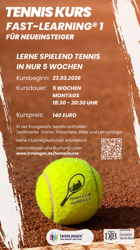Alle Informationen und die Möglichkeit zur Anmeldung zum Fest-Learning 1 Tenniskurs im Bereich Kurse
